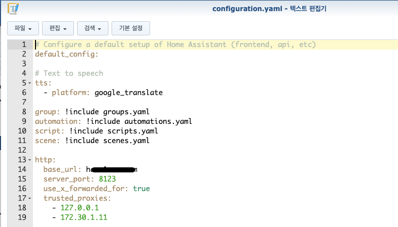 - config 폴더 configuration.yaml 수정